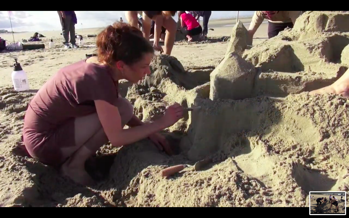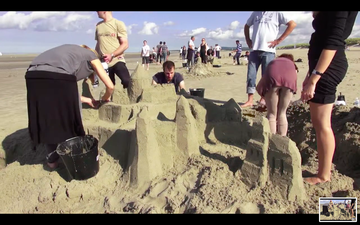 La plage, des pelles, du sable fin et de l’eau : tous les ingrédients du château sable, un brin de régression en plus ; un maximum de coopération pour concevoir et bâtir des créations originales et ambitieuses, aussi solides et esthétiques qu’éphémères.